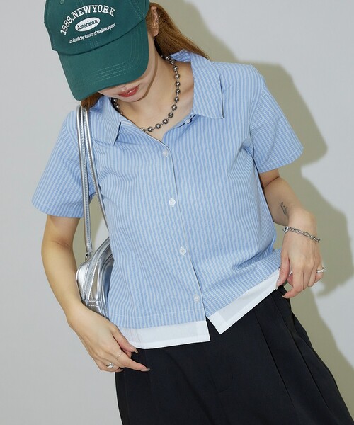 2025 Spring & Summer item レイヤード風デザインがこなれ感のある切替シャツ ●一枚でレイヤードスタイルが完成する、裾切り替えデザインがポイント●本体は薄手のサッカー生地のような、やや凹凸感のある素材を使用●さらりとした肌触りで、清涼感のある快適な着心地●裾部分はほんのり透け感があり、軽やかな印象をプラス●ヒップ上までのショート丈で、スタイルアップ効果も期待できるバランスの良いシルエット ========== ◆おすすめコーディネートシンプルなデニムやスラックスに合わせて、シャツのデザインを主役にした着こなしがおすすめ。ハイウエストのボトムスと合わせれば、脚長効果も期待できるバランスの良いスタイリングに。インナーにはタンクトップやキャミソールを合わせ、裾の透け感を活かしたヘルシーな肌見せも楽しめます。カジュアルからきれいめまで、幅広いテイストにマッチする着回し力の高い一枚です。 --- ※商品の色味は、商品詳細画像をご確認ください。 ※掲載画像の商品の色味は、屋外や屋内の光の照射や角度により実物と色味が異なる場合がございます。また表示のサイズ感と実物は若干異なる場合もございますので、予めご了承ください。 ※着用、お取り扱いの際は、商品についている品質表示とアテンションタグを必ずご確認下さい。【PUBLUX/パブリュクス】その瞬間を大切に、なりたい自分になれたら。いま着たいリアルクローズを自由な感性で提案する、ジェンダーレスなストリートブランドです。