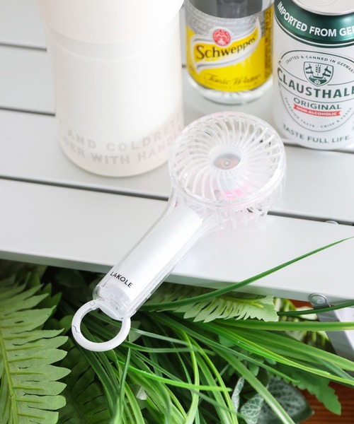 【クリアなデザインが涼し気な扇風機】 <デザイン> 透け感のあるクリアボディがポップで可愛いデザイン。 暗いところでキラキラと映えること間違いなしの、自動で切り変わる7色のLEDライト搭載。 持ち運びに便利なカラビナ付きで、バッグの持ち手や、お好きなストラップに取り付けて自分なりのおしゃれを楽しむのもオススメです。 <機能> 誤作動を起こさないようにダブルクリックにて起動し、ボタン操作で3段階の風量調節が可能です。 カラビナは折りたためばスタンドにもなり、置き型としてもお使いいただけます。 ■電源入力:DC 5V 1A ■消費電力:4.5W ■充電ポート:Type-C ■充電時間:約2時間 ■連続使用可能時間:約7.5時間(弱)/約4時間(中)/約1.75時間(強) ※FAN+LEDライトは使用環境により異なります ■風量調整:3段階(弱・中・強) ■バッテリー容量:1200mAh ■充電ケーブル付