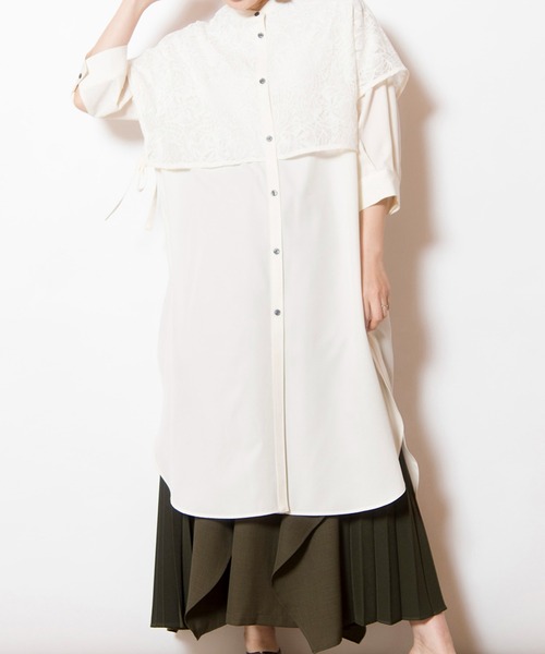 Spring Summer collectionヴィンテージシックなムードのレースを重ねた、品行方正なロングシャツ。羽織として、ヒップや二の腕カバーも出来る頼れる1枚。===========================透け感: 僅かにあり(WHITE)伸縮性: 僅かにあり光沢感: 僅かにあり裏地: なし素材について: 上品なツヤととろみのあるブラウス地===========================【素材】 ポリエステル98%,ポリウレタン2% レース/ナイロン63%,コットン25%,レーヨン8%,再生繊維(セルロース)3%,ポリエステル1%【洗濯表示】 洗濯機可■商品のお気に入り登録クーポンやタイムセール、再入荷通知やラスト1点などお得な情報を受け取ることができます。ご登録をお忘れなく◎