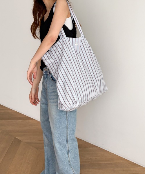 デザイン ストライプ柄が爽やかなトートバッグ。 大容量サイズでメイン使いはもちろん、コンパクトに畳んで持ち運びもしやすくサブバッグとしても◎ 素材 コットン素材なのでシーズンレスでお使いいただけます。 コーディネート お出かけや通勤・通学など様々なシーンに大活躍。 アクセントになるカラーでコーデのワンポイントにおすすめです。 ※照明の関係により、実際よりも色味が違って見える場合があります。またパソコン・スマートフォンなどの環境により、若干製品と画像のカラーが異なる場合もございます。 ※商品の色味は、商品アップ画像をご参照ください。