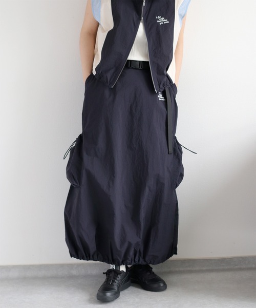 存在感があり、シンプルなTシャツと合わせるだけでおしゃれ見えスカート! デイリー使いはもちろん、フェスやBBQ、キャンプなどアウトドアにも最適の一枚。 セットアップのベスト(CFL-3687)と合わせてコーデを楽しめる♪ ◇Point◇ 裾は調整のできるドロスト仕様なので、絞ることでシルエットの変化が楽しめます☺︎ セットアップ(CFL-3687)ベストと着用したり、シンプルなTシャツと合わせるだけで、旬な着こなしを楽しむことができます。 スポーティーコーデなら、ロゴTシャツやスニーカーと合わせてアクティブな印象に♪ 季節を問わずスタイリッシュなコーディネートの一部として活用できるアイテムです。 ◇Material◇ ⚫︎裾とポケットのドロストを調節してシルエットの変化を楽しんで☺︎ ⚫︎ポケットは大きめ!たっぷり入ります♪ ⚫︎ナイロン100%素材でサラッと気持ちのいい着心地! ⚫︎カラーはオフホワイト、ネイビーの2色展開 ⚫︎ウエスト前はフラットでインしても綺麗。 ⚫︎シンプルながらも、可愛いシルエットが女性らしく演出♪ ⚫︎アウトドアやレジャーシーンにも大活躍! ⚫︎ゆとりのあるストレートシルエット ⚫︎ウェストゴムでストレスフリーな穿き心地。付属のウェービングベルトで調節も◎。 ⚫︎裏地なし、透け感はほぼありません ※カラーにより素材の混率が異なります。 ◇Coordinate◇ いつものTシャツスタイルにプラスするだけでこなれ感を演出! セットアップ(CFL-3687)でベストと合わせるのはもちろん、 同系色のTシャツでワントーンコーデがオススメです☺︎ ※照明や天候により実際の色味と異なって見える場合がございます。ご了承くださいませ 【キーワード】 #Y2K#20代#30代#40代#50代#スポーティー#セットアップ#アウトドア#イージーケア