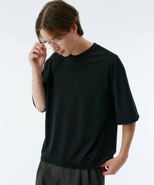 ◆拘り:暑さにまつわる着苦しさからはもう サ・ヨ・ウ・ナ・ラ体温と湿度を涼しくコントロールしてくれる自信の新素材『Air tool lite』をローンチしました。-3つの意味-・Air (風/空気)が通る・Air (Con)t(r)エアーコントロール・Air tool(s) = (風/空気)を操るツール(道具)-2つのオドロキ-・着用した瞬間 『ひんやり!?とした肌当たり』 が心地よく・動くとメッシュ構造により 『風が通り抜ける』 不思議な新感覚素肌のままより『Air tool lite』を纏っているほうが快適に過酷な環境下を過ごせます。暑い時期の嫌なことがなくなり・・・ファッションも楽しめる 一石二鳥なシリーズ。また、まるで上質なウールのような見栄えはコーディネートを品よく格上げしてくれます。ゆったりしてるのにコンパクトなバランスのリラックスTシャツ。『Air tool』の素材の恩恵を生かせるようにUVカットしながら熱を逃がします。◆素材:『Air tool』 ナイロンを軸とする接触冷感を備えたハイストレッチメッシュ素材。ナイロンは熱と水分を吸収しさらに放出する力がコットンなどより強くスポーツなど過酷な環境下で快適に過ごすことに最適です。そのテクノロジーをファッションの領域に引き込んだのが『Air tool』です。メッシュ構造ながら着用時の透けを感じない絶妙なバランス。140%伸びるけど元に戻る 伸縮性1歩で約20リットルの空気が通る 通気性鞄に入れてもシワになりづらい 防シワ性太陽から体を守ってくれる UVカットと機能面も充実です。◆原産地富山