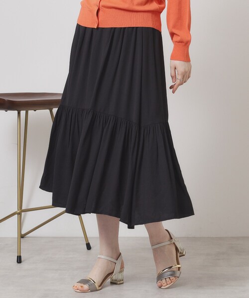 【デザイン】 ふわっと軽やかなロングスカート。 リラックス感が心地よい夏にピッタリのアイテムです。 さらりとした肌触りと、薄手で軽さのある素材感が夏の暑い時期にピッタリ。 麻調のスラブを表現した節のある表面感が特徴で、程よいカジュアル感が魅力。 ティアードデザインが足元をふわっとエレガントに演出してくれるロングスカート。 薄手素材なのでたっぷりの分量感でも軽やかな着心地。 サンダル合わせのきれいめスタイルから、スニーカーでカジュアルに着こなしても可愛いです。 ウエストはゴム仕様なので着脱し易くリラックス感のある穿き心地。 同素材のブラウス【P93-52530】とセットアップでの着用も可能です。 【素材】 強撚の糸を使用したさらりとした肌触りのスラブ素材です。 【仕様】 ・ポケットなし ・ウエスト総ゴム ・裏地あり ※こちらの商品はやや透け感があります。 ※照明の関係により、実際よりも色味が違って見える場合があります。また、パソコン・スマートフォンなどの環境により、若干製品と画像のカラーが異なる場合もございます。 ---------------------------------------- ★お気に入り登録がおすすめ★ ▽気になる商品はハートマークをクリック! ・再入荷やセールの通知をお知らせ ・お気に入り一覧からいつでもチェック ▽ブランドのお気に入り登録も! ・新商品やお得な情報をいち早くお知らせ ---------------------------------------- モデル情報:身長165cm B82 W60 H88 着用サイズ:00(フリーサイズ) 店舗へのお問い合わせ商品番号:P93-62523 ●製品寸法: 00(フリーサイズ):W62~72cm H90cm 総丈80cm 備考: