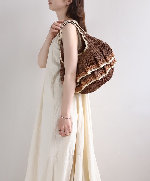 目を惹くカラフルな配色と華やかなフリルが、コーデのアクセントになるバッグ。 内ポケットが備わっているため、バックの中身を整理しやすく使い勝手抜群。 マチが広く大容量なので、厚みのある荷物もしっかりと収納できます。 ※ATTENTION※ ■微細なキズや製造ムラはすべての商品に含まれます。 ■摩擦や水濡れ(雨、汗、アルコール消毒液など)により色落ちする場合がございます。