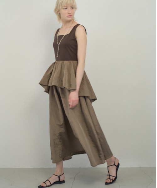 Buell onepiece ビューエルワンピース color:Off×Off/Mocha×Brown/Black×Black size: S / M ビューエルワンピース Buell onepiece カットソーとシャイニーな素材とのドッキングが可愛いこちらのワンピース。 ペプラムデザインで腰回りとウエストのメリハリを付け印象的に仕上げました。 ペプラムも後ろに向かうほど長めになっているので、サイドからみた印象にも変化があります。 ネックはスクエアでトレンド感もあり一枚でスタイリングが決まる一着です。 勿論スカート部分にポケットも完備。 夏の主役ワンピースとして是非ご検討ください。 ※ご覧頂いている商品画像につきましては、できるだけ実物の色に近くなるように努めておりますがお使いの環境(モニター、ブラウザ等)の違いにより色の見え方が実物と若干異なる場合がございますので予めご了承ください。 Details 表地:ポリエステル70%ナイロン30% 別地:綿100% 裏地:ポリエステル100% Size 【M size】着丈130cm ウエスト73cm バスト83cm 肩幅33cm 裾まわり278cm 【S size】着丈120cm ウエスト73cm バスト83cm 肩幅33cm 裾まわり278cm ●低身長の方にもバランスよく着ていただける、着丈違いのSサイズをご用意しております。通常のMuel ChicフリーサイズはMサイズ相当です。 Model H:175cm B:82cm W:60cm H:88cm □□□□□□□□□□□□□□□□□□□□ Muel Chic / ミュエル シック 日々の忙しさを感じながらも、一日一日を大切に過ごしたいと願う大人のためのワードローブ。 Muel Chicはモノトーンカラーを主軸とし、普段使いが出来る定番アイテムにほんのりスパイスを加えたデザインで毎日のスタイリングに彩りを加えます。 カジュアルでありながらも大人っぽい、女性らしさもありながらクールな佇まいを感じる Muelらしいストリートシックなスタイリングをお届けします。 □□□□□□□□□□□□□□□□□□□□ □お気に入り登録について 完売カラーの再入荷通知やお得な情報を受け取ることができます。 □ブランドのお気に入り登録について ブランドの新商品や再入荷などお得な情報を受け取ることができます。 □ショップのお気に入り登録について ブランドに関わらずショップの新着情報やお得な情報を受け取ることができます。