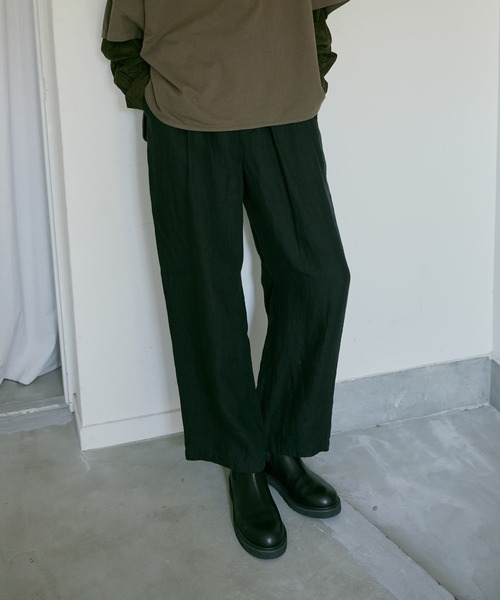 リネン100%のスラックスイージーパンツ■POINT■ナチュラルな風合いと程よい光沢感が上品なリネン素材は、軽やかで通気性が良く、暑い日でも快適に過ごせるアイテムです。ウエストは部分的にゴムが入っていて、スラックスのかっちりさがありながらイージーでリラックスした着心地で、デイリーにはもちろん、ちょっとしたお出かけや旅行にもピッタリです。フロントの大きく長めにデザインされたタックで、腰回りにゆとりをもたせるワイドストレートシルエットになっています。■生地■チェックにはアッシュグレーやブラックよりも薄手のリネンを使用しているため、裏地が付いています。リネン100%は高騰が進み、無地も例年に比べて高級素材となっていますが、チェックはより貴重な素材となっています。その中で特にお買い上げいただきやすい設定のアイテムとなっています。■COLOR■アッシュグレー・ブラック・チェックネイビー・チェックライトグリーン透け感:透けない伸縮性:なし裏地:あり (442番色(チェック地)のみ裏地あり)ポケット:ありウエストゴム:あり----------------------------------------------------------------------◆◆お気に入り登録しておすすめ情報をゲットしよう◆◆【商品のお気に入り登録】再入荷、残り1点、セール、タイムセール、クーポンなど、いち早く受け取ることができます。【ショップ・ブランドのお気に入り登録】新商品、予約商品、再入荷、ショップのおすすめトピックスなど、ショップ・ブランドの最新情報を受け取ることができます。----------------------------------------------------------------------※商品についている品質表示タグやアテンションタグを必ずご確認の上、着用、またはお取り扱い下さい。※画像の商品はサンプルです。実際の商品と仕様、加工、サイズが若干異なる場合がございます。※撮影場所により、光の当たり具合で色味が異なって見える場合がございます。商品写真はできる限り実物の色に近づけるようにしておりますが、実際の商品と色味が異なる場合がございます。カラーは商品の掛け画像をご参照下さい。