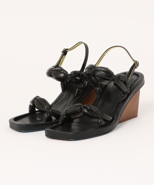 MANA マナ スクエアトゥ・ウッドヒールサンダル ◆独創的なデザインで主役級の存在感のあるサンダルです◆ 丸みのあるストラップデザインが女性らしい印象に。 足あたりもふかふかで気持ちよく履き心地のいい1足。 ウエッジソールなので安定感も抜群です。 【ブランドコンセプト】 甘いだけじゃなく、 毒気もあってフェミニンだけじゃなくカジュアルミンドも好き、 デコラティブの気分もありながらもニーマムも好き。そんな女性のわがままな気分を靴で表現しました。わがままで自分で勝手だけどでも憎めない、そんな女性たちは「MANA」ブランドです。甘くて悪魔的な...女性的だけどカジュアルな... 装飾的でシンプルな... すべての女の子が靴に持っている気分な気持ちを落としました。私たちはMANAブランドを気まぐれだが、決して憎まれない女の子達に提案したいと思っています。 ※店頭及び屋外での撮影画像は、光の当たり具合で色味が違って見える場合があります。商品の色味は、スタジオ撮影の画像をご参照ください。