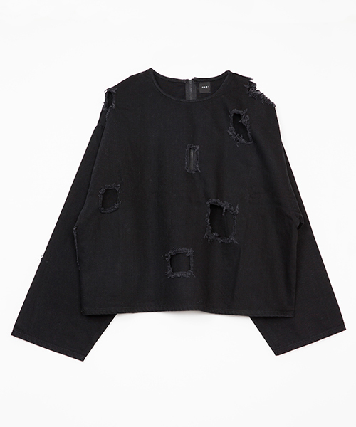 大胆なダメージ加工が、マニッシュな気分を盛り上げるトップス☆カットオフデザインで、こなれ感をプラスします。メンズライクな印象を与えるワイドフォルムも魅力のひとつ。 モデル身長:173cm