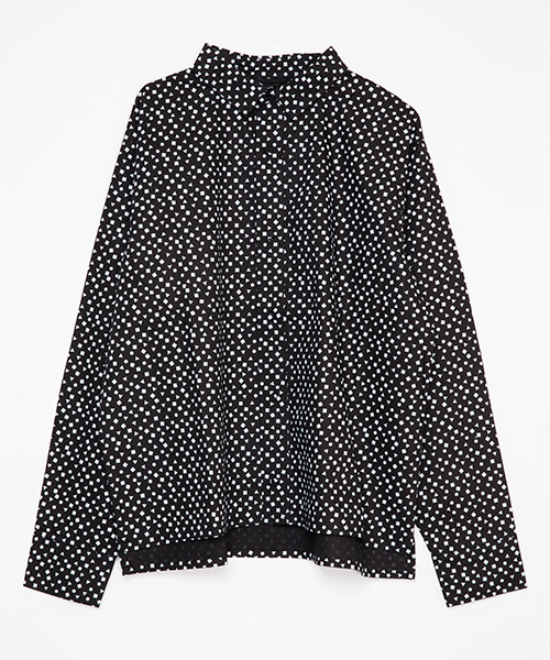 細かな総柄にモードな印象を受けるシャツ☆ルーズなシルエットで、メンズライクに着こなせるアイテムです。存在感たっぷりだから、コーディネートのアクセント使いにオススメ! ※画像と柄の位置が異なる場合がございます、ご了承下さい。 モデル身長:173cm