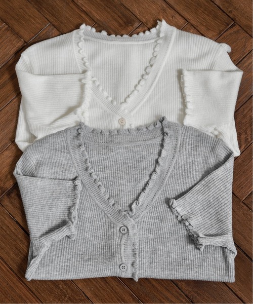 【フリルポイントショートスリーブカーディガン】 ・袖と裾、襟からフロントにかけてのフリルが可愛いカーディガン ・羽織としてはもちろん、フロントを閉めてトップスとしてもお召しいただけます ・バランスの良い丈感で、お手持ちのボトムスとも相性抜群 ・柔らかい手触りのリブ生地は伸縮性があり着心地良くお召しいただけます ・コンパクトなシルエットはカジュアル合わせから綺麗めまで幅広くコーディネートに合わせていただけます ・襟とフロントフリルのサイドのリブ切り替えがアクセント◎ 透け感:ややあり 伸縮性:あり lawgy" ラウジーlaugh(笑顔)+ energy(エナジー)毎日笑顔で過ごすエネルギーになりますように。心を込めて…。