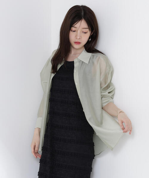 カーディガンを羽織るように使えるシアーシャツ。 身頃は適度にゆとりのあるシルエットで軽やかに着ていただけます。 襟は後ろに抜くように着こなすと抜け感がでておすすめ。 キャミソールやタンクトップ、ノースリワンピースの上からさっと羽織るだけで様になるデザインです。 <素材> シアー素材を使用。チェック柄のみ着心地の良いキュプラ混の素材を使用しています。 <詳細> 仕様・前ボタン 裏地・なし 透け感・ややあり / 光沢・ややあり / 伸縮性・なし 生地の厚さ・薄手 ※モデルの着用画像の場合、光の当たり具合により、実際の色味と異なって見えることがございます。 色味は、商品単体の画像をご参照ください。 <商品のお気に入り登録> お気に入りアイテムの値下げ・再入荷・在庫1点などの通知を受け取ることができる 便利機能ですので気に入ったアイテムはお気に入り登録がおすすめ! <ショップのお気に入り登録> 新商品や再入荷、セール、クーポン配布などお得な情報を受け取ることができます。 ●撮影はサンプル商品で行っている為、仕様とサイズが異なる場合がございます。 ●スタジオ及び屋外で撮影した着用画像は、光の当たり具合で色味が違って見える場合があります。予めご了承ください。