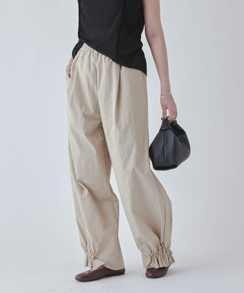 《 Lui's FEMME(ルイス ファム)オリジナル25SSコレクション 》 ナイロンボリュームパンツ ●デザイン 程よい光沢感とハリ感のあるパンツ。 ウエストは総ゴムで、内側に紐が付いているので調節可能◎ 表面にシワ感もあり、シャカシャカとしたナイロン素材は薄手でサラッと軽い着用感です。 足首にはドローコードがついていて、少し絞ると全体のシルエットが変わり雰囲気も変わります。 程よくオーバーサイズで、でも形のキレイなボリュームパンツなので体系問わず着ていただけます。 ●素材 シャカっとしている楽な履き心地の素材感。 生地も厚すぎないので、夏も大活躍しますしシーズンレスで履いていただけます。 ●スタイリング オーバーサイズのTシャツや、ピッタリめなコンパクトトップスで合わせて女性らしいカジュアルコーデはもちろん 夏はタンクトップやノースリーブと合わせてもヘルシーで今っぽいスタイルに。 足元は、スニーカーはもちろんミュールやローファーで合わせるのも大人カジュアルでオシャレに決まります。 ********************** 透け感:なし 裏地:なし 伸縮性:なし 光沢感:なし 生地の厚さ:普通 ********************** 【ブランド】 Lui's FEMME(ルイス ファム) 凛とした芯のある女性。 自立した、女性のワードローブをイメージ。洗練されたかっこよさの中に、女性らしさ・かわいさ・セクシーさを持つ。自分自身のスタイル(自分らしさ・個性・生き方・感覚...)を表現できるひとつの手段としての服。肩肘張らない、心地よいリラックス感のあるスタイルを上質な素材、優雅なシルエットで提案。 《商品画像について》 ご覧頂いている商品の写真につきましては、できるだけ実物の色に近くなるように努めておりますが、お使いの環境(モニター、ブラウザ等)の違いにより、色の見え方が実物と若干異なる場合がございます。 予めご了承ください。 《予約商品について》 ・こちらの商品はサンプルでの撮影・計測となっております。実際の商品とは、商品の一部仕様が変更になる場合がございます。 ・撮影サンプル品はブランドタグがついておりません。製品にはタグがつきますので、製品の表に縫い糸が見えたり、着用時にタグが透ける場合がございます。 ・サンプルの為、混率の詳細が確定しておりません。確定次第、記載いたします。 ・工場の生産の都合上、納期が変更になる場合がございます。発送日の前後についてはあらかじめご了承ください。 ・入荷状況により、お客様への発送が店頭販売より遅れる場合もございます。 ・店頭に陳列していた商品も含まれる場合がございます。 《ハートをタップして商品のお気に入り登録》 登録カラーの商品の「残りわずか」「再入荷」「値下げ」通知を受け取ることができます。 各ショップアプリにてブランドフォロー 新商品などの入荷情報、最新のニュースやお得な情報を受け取ることができます。