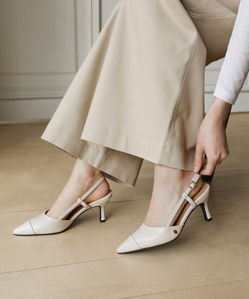 Arinze エナメル スリングバックヒール (7cm) ヒール高さ5cm Verは M1134011 で検索 控えめな洗練さを表現したスリングバックヒールです。 細身のスティレットヒールには切り替えパターンと光沢のあるエナメル素材が加わり、優雅なムードを演出します。 Tストラップとバックルのディテールが安定感をもたらします。 シンプルで効果的なポイントとして、ミニマルなゴールドロゴとアナロゴ感を込めた独自のシンボルを使用しました。「ARINZE」と一緒に特別な一日をお過ごしください。 ■サイズチップ 足幅狭め (20.5cm) - 足幅と長さ、ストラップ全てに快適で安定したサイズ / 普段通りのサイズがおすすめ 足幅普通 (21.5cm) - 足幅、甲高、長さ全てに快適 / 普段通りのサイズがおすすめ 足幅広め (22.5cm) - 長さはちょうど良いが、足幅部分がややタイト / 標準サイズまたは5mmサイズアップをお勧めします。 •23.5cmを基準に記載していますが、着用感・サイズ感は個人差がございます。 ■商品情報 基準サイズ : 23.5cm 前の反り : 0.5cm ヒールの高さ:7cm インソールを含む : 8cm 総高さ : 12cm 足の幅 : 8cm ■素材 : エナメル サプン(SAPPUN)は、現代の女性がさまざまな状況で本来の個性とスタイルを表現できるように、つま先から自信を引き出すファッションを作ります。 同時代のトレンドを反映した多彩なデザインを手頃な価格で提供し、毎瞬間、私だけの感覚的なスタイルを完成させるシューズキュレーションブランドです。 製造社 (株)F&S Retail 取扱い時の注意事項 洗濯が可能な商品に限って単独洗濯し, 洗濯の際には、中性洗剤を使用してください。 靴が濡れた場合には、 乾布などで水気を切ってください。 形態の変形を防止するために靴の内側に紙や布を入れて,風通しが良い日陰で乾燥してください。 Copyright protection SAPPUNの全てのコンテンツを無断で複製する場合、訴訟係属の責任を要求する可能性があります。 自体製作商品はSAPPUNから直接に製作又生産し、販売しております クオリティが低い複製品/類似品ご注意ください。