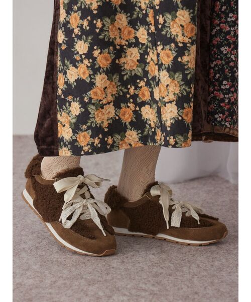 ローテクスニーカーに、ふわふわのフェイクファーと2種類のリボンを添えて。 甘さとカジュアルのバランスがちょうど良く◎足あたりのやわらかい軽量ソールで、長時間のお出かけもらくちんです。 シューレースはコットンレースを使用してよりガーリーに、とっておきな1足に。【商品のお気に入り登録】♡をクリック!完売カラーの再入荷や、ラスト1点の通知、セールの際の通知も受け取ることができます。【ブランドのお気に入り登録】新商品や再入荷など、merryの情報をいち早くお知らせします!ぜひご登録ください♡
