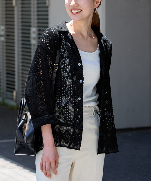 ◆大人気!アンティークレースオープンカラーシャツが再入荷! ・旧品番24050220100020・24050220100120・25050220415020の追加品番です。 ・同一商品でも個体差が生じるため、採寸内容に若干の差が生じる場合がございます。 温かみのあるクラフト感が魅力のオープンカラーシャツ。 アンティーク調の立体感のある5種類のレースを組み合わせ、一枚で着映えるデザインに仕上げました。 華やかさがありつつも、オープンカラーシャツに落とし込むことで甘くなりすぎないのがポイント。 デニムやカーゴパンツなどのボトム合わせがおすすめです◎ ********************** 透け感:あり 裏地:なし 伸縮性:なし 光沢感:なし 生地の厚さ:普通 ********************** ※取り扱いについては、商品についている品質表示でご確認ください。 ※こちらの商品は、FRAMeWORK での取り扱いになります。 直接店舗へお問い合わせの際は FRAMeWORK 店舗へお願い致します。 ※照明の関係により、実際よりも色味が違って見える場合があります。 またパソコン・スマートフォンなどの環境により、若干製品と画像のカラーが異なる場合もございます。 予めご了承の上ご注文ください。 ※商品の色味は、商品アップ画像をご参照ください。 本体:手洗い可能