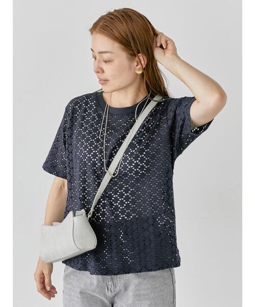 カットレースで愛らしい印象に仕上げたハーフスリーブトップス。軽やかな透け感のあるデザインがシーズンらしい爽やかなスタイリングを演出。ラウンドネックのベーシックなシルエットで、バランスの良い着こなしに。カジュアルやガーリーなコーディネートにと、幅広く活躍してくれるアイテムです。※商品画像は、撮影環境やお客様のご利用のPC・スマートフォンのモニター環境などにより実物と色味に差異がある場合がございます。