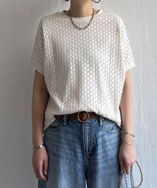 【プチプラ1990円(税込)】シリーズ ★26076780 アイレットレースプルオーバー ★26921065 冷感ドルマンプルオーバー ★26921066 レースジャカード切り替えプルオーバー レースのような柄が浮かび上がるアイレットカットワークのプルオーバー。 シルエットはあえてシンプルに仕上げ、素材の表情が映えるフレンチスリーブ仕立てです。 【素材】 レースのような柄のアイレットカットワーク素材。 【デザイン】 シンプルで素材を活かしたフレンチスリーブプルオーバーです。 【ポイント】 裏地がついていて、一枚で着用可能なカットワーク素材がポイント。 ストレッチが効いているので、Tシャツライクに着られます。 ■ お得だ値 (ね)!とは? 普段より「お得な価格」で提供している商品です。 - コストダウンの取り組み - ・生産地を見直し、製造コストをダウン ・工場の閑散期に生産することで、製造コストをダウン ・オリジナル素材を開発し、素材コストをダウン 今シーズンは「値下げ」をしない安心価格です! [クリーニング] 洗濯機洗い可(非常に弱く)、ウェットクリーニング(W)、洗濯の際はネットを使用してください