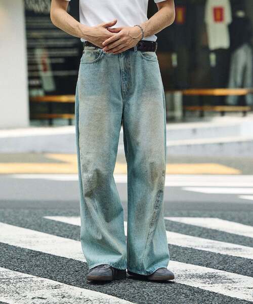 VMID:1073810504 ***************************************************************** ブラウザ版でご覧頂ける動画のモデルと着用サイズ →身長:178cm / 着用サイズ:M / 着用カラー:ブルー ***************************************************************** 旬なワイドシルエットが存在感抜群のデニムパンツ。 ヴィンテージ風に加工を施した雰囲気抜群の一本。 ボリュームのあるシルエットで履くだけで今っぽさを演出してくれます。 大人の人でもチャンレジしやすい新しい形のデニムとなっています。 ********************** 裏地:なし 伸縮性:なし 光沢感:なし 生地の厚さ:普通 ********************** ※取り扱いについては、商品についている品質表示でご確認ください。 ※照明の関係により、実際よりも色味が違って見える場合があります。またパソコン・スマートフォンなどの環境により、若干製品と画像のカラーが異なる場合もございます。 ※商品の色味は、商品アップ画像をご参照ください。 本体:洗濯機洗い(弱)
