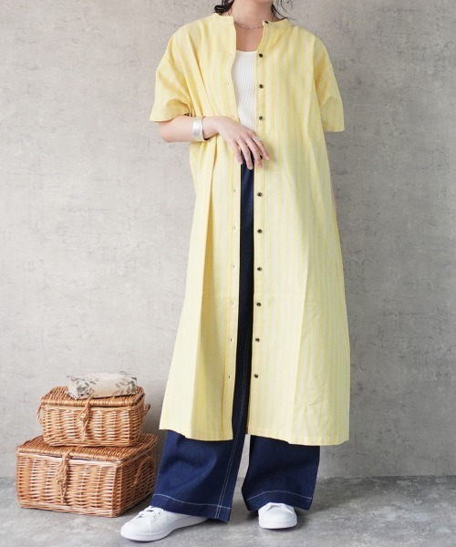 《商品説明》 春夏に1枚で主役になるストライプシャツワンピース登場! 適度なゆとりがあるので パンツやスカートのシルエットを選ばず着られて 夏のレイヤードに大活躍するアイテム。 パッと目を惹く春夏に ピッタリなカラー展開が可愛い!? ------------------------------------------------------------- 《着用感》157cm しっかりとした生地感で柔らかい肌触り◎ 気になる二の腕をしっかりと カバーしてくれる丈感が嬉しいポイント? 大きすぎないサイズ感と涼しげなカラー展開が 女性らしさを演出してくれる1枚です! カラーはベージュ・イエロー・グリーンの3色展開です。 ============================ Emma:SELECT LEVERY(エマ:セレクトリベリー) 働く女性から主婦まで大人の女性を応援し、毎日、心豊かに過ごせる洋服を提案するブランドです。 ============================= □お気に入り登録について 完売カラーの再入荷通知やお得な情報を受け取ることができます。 □ブランドのお気に入り登録について ブランドの新商品や再入荷などお得な情報を受け取ることができます。 □ショップのお気に入り登録について ブランドに関わらずショップの新着情報やお得な情報を受け取ることができます。