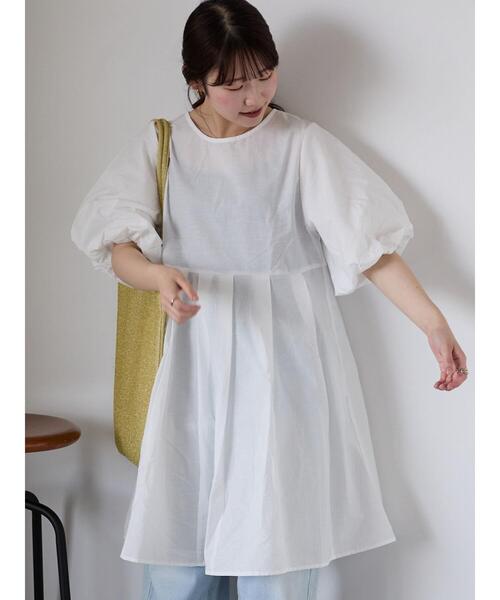 ぽわんとしたボリュームのあるバルーンスリーブが可愛らしいミニワンピース。タックの生み出すフレアシルエットとバックのリボンがキュートなポイント◎ワンピースとしてはもちろん、パンツを合わせてチュニック風にスタイリングしたりと、着こなしのアレンジが楽しめる1着です。※商品画像は、撮影環境やお客様のご利用のPC・スマートフォンのモニター環境などにより実物と色味に差異がある場合がございます。