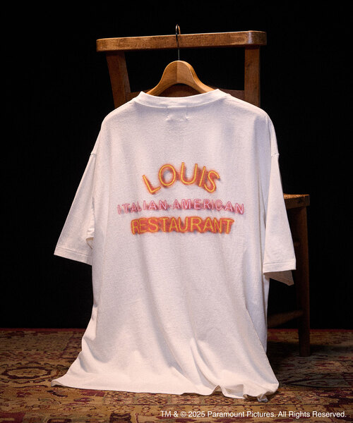 1972年に公開されたアメリカ映画『ゴッドファーザー(The Godfather)』不朽の名作『ゴッドファーザー』はアメリカでのし上がり、のちに権力を失いかけるシチリア系一族コルレオーネ家の「愛する家族」と「犯罪組織」を重圧なタッチで巧みに活写した壮大な叙事詩。◆ブラック(001) / ホワイト(010)ゴッドファーザーのタイトルロゴをフロッキープリントで表現。背面の首元にはアイコンロゴをあしらった気の利いたデザイン。着て頂くほどにフロッキープリントに味が出ていき、経年変化を楽しめます。◆ブラックA(002 / ホワイトA(011)世界各国のタイトルロゴをエンドロールのように表現したユニークなデザイン。単色のプリントですが、ゴールド調の為モダンな印象です。◆ブラックB(003) / ホワイトB(012)「LOUIS RESTAURANT」は、ニューヨークのブロンクスに実在したレストラン。物語のなかでターニングポイントとなる、重要なシーンで使用されています。レストランの看板の特徴であるネオン管の鮮やかな見た目をプリントで表現。存在感のあるデザインです。◆ブラックC(004)「ゴッドファーザー」は、イタリア語でパドリーノ(Padrino)。 「名づけ親」を意味します。主要人物であるヴィトー・コルレオーネや物語において「悲劇的な出来事」を予感させるモチーフとして描かれているというオレンジなどゴッドファーザーの世界観を象徴するようなグラフィックをプリント。フロントロゴもイタリア語のタイトルで統一感を出しています。◆ブラックD(005)フロントの"HE SLEEPS WITH THE FISHES"は物語の掛け合いで出てくる有名なセリフ。それを用いたグラフィックをプリントしています。背面の首元にはタイトルロゴを入れています。ブラックB(003)※お届け予定に遅延が生じております。7月中旬お届け予定です。本体:洗濯機洗い(弱)