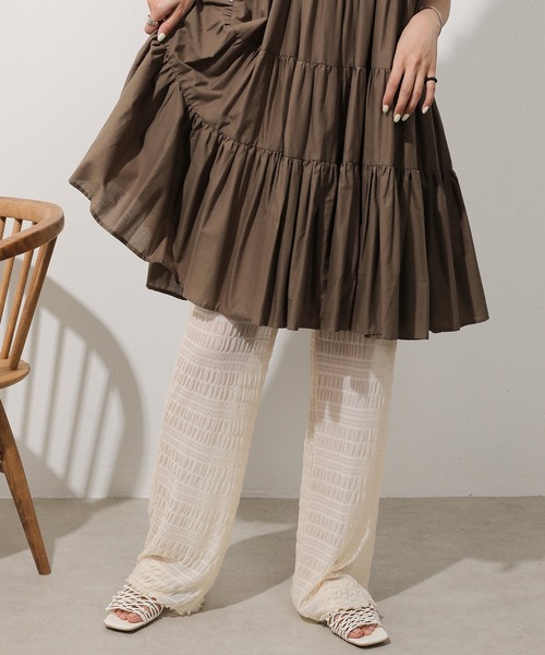 シアーでトレンド感をプラス程よい透け感でスタイリングにニュアンスを ■point ・揺れ感のあるシルエットがコーデに表情をプラス ・ほんのり透ける素材が女性らしさを惹き立て こなれた印象に ・個性あるテクスチャがさりげなく映え装いのポイントに ■detail ・裏地なしならではの軽やかな素材の落ち感 ・さらりとしたストレスフリーな履き心地 ・体のラインを目立たせないゆったりデザイン ・触り心地のいいシアー素材 ■fabric ・長めの丈感で気になる部分をカバーし スタイルアップ効果も ・裾のメロウ加工がさりげないアクセントに ■wearing scene お出かけ ショッピング デート パーティー 入学式 卒業式 結婚式 披露宴 成人式 同窓会 女子会 2次会 謝恩会 演奏会 発表会 オフィス 旅行 プレゼント 誕生日 カフェ 公園 お花見 ーーーーーーーーーーーーーーーーーーーーーーーーーーー ★お気に入り登録でお得な情報を受け取れます★ ●商品のお気に入り登録 再入荷、ラスト1点、セール通知 ●ブランドのお気に入り登録 新商品、再入荷、おすすめトピックなどショップ独自の情報 ーーーーーーーーーーーーーーーーーーーーーーーーーーー ―― monocoro toppi ""モノコロトッピ"" ―― “今の暮らしをここちよく”をコンセプトに、 キッチン、ファッション、雑貨、インテリア、アウトドアなど 毎日使うための日用品から大切な人に贈りたいギフトまで、 こころを豊かにしてくれる楽しいアイテムを幅広く取り揃えています。 ときめきや直感を大切にする、遊びごころを忘れず、こころくすぐるモノやコトをかたちにして提案していきます。