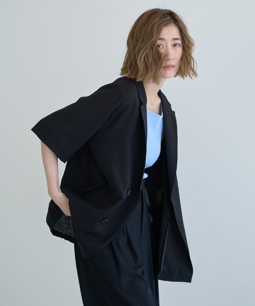 ヴィンテージ感のある薄手のレーヨンナイロン生地で仕立てたハーフスリーブジャケット。 裾のドロストコードを絞ってお好みのシルエットに変えられるのも嬉しいポイントです。 軽やかな着用感で快適な着心地も魅力的。 いつもの着こなしにさっと羽織るだけでスタイリッシュに決まるおすすめのアイテムです。 透け感[ややあり] 生地の厚さ[薄手] 光沢感[なし] 伸縮性[なし] 裏地[なし] ポケット[あり] ※モデル着用画像は、光の当たり具合で色味が違って見える場合がございます。 ※お使いのモニター環境によって商品の色味が違って見える場合がございます。 ------------------------------------------- ●YECCA VECCA● (イェッカ ヴェッカ) 「大人のハッピーモードな着映え服」 毎日を自分らしく、ハッピーに過ごすことにポジティブな女性のためのリアルクローズ。キーワードは「遊び心のある、女性らしいモード服」でも「コンフォート」。 都会的で女性らしいムードを大切に着ていて心地よく、気持ちが上向きになるような遊び心のあるデザインウェアをラインナップ。 自分自身がわくわく出来る洋服で日常を最大限に楽しむ大人の為のスタイルを提案していきます。 ▼商品のお気に入り登録がおすすめです ▼ 商品ページ内のハートマークをクリック。完売時の再入荷や、最後の1点の通知、コーディネート画像がアップされたとき、お得なお値下げの際の通知を受ける事ができます。 【お知らせ】ページでも通知が確認できます。 -------------------------------------------