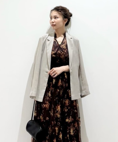 【清涼感のあるカラミ織りがモダンな印象。軽く着られて応用範囲の広い夏ジャケット】 【Design/Styling】 夏らしく清涼感のある、カラミ織りの生地で仕立てた、表情豊かなジャケットです。 落ち感のある風合いで、涼しげにサラッと羽織れるアイテム。 フロントはワンボタンで、スッキリと抜け感のあるデザインに仕上げました。 ボタンも、トレンドのメタルボタンを使うなど、こだわってモード感を出しています。 後ろは細めのひもをつけているので、リボン結びで女性らしく演出することも。 また、バックベンツは深めにとって、軽やかな印象にしています。 ワンピースと合わせるなど、キレイめなコーデにもオススメです。 カラーは3色をご用意。爽やかでエレガントなIVR、洗練された上品なムードのBEG、モード感があってシックなBLKで展開しています。 ※照明の関係により、実際よりも色味が違って見える場合があります。 またパソコン・スマートフォンなどの環境により、若干製品と画像のカラーが異なる場合もございます。予めご了承ください。 商品の色味は、商品単品画像をご参照下さい。 ※商品画像はサンプルのため、色味やサイズ等の仕様に変更がある場合がございますので、予めご了承ください。