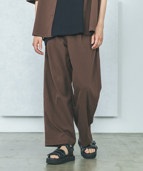 ゆとりのあるシルエットと落ち感のある素材で見た目にもリラックス感があるパンツ。 無地ですが楊柳独特の凹凸がある素材で風合いが良いです。 【素材】 柔らかくサラッとした素材。 べたつきにくく夏でも爽やかな着心地です。 【スタイリング】 ベーシックなデザインなのでどんなアイテムとも合わせやすいです。 同素材のシャツとのセットアップスタイルもおすすめです。 ▼同素材のシャツはこちらブランド品番:499152 ZOZO商品コード:95448680
