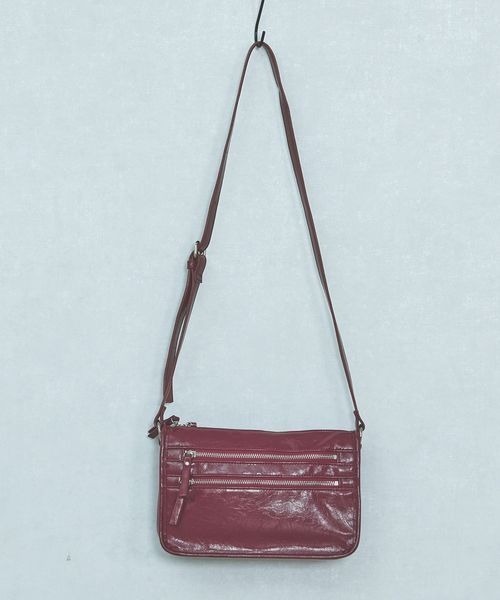 フロントのダブルジップデザインがアクセントのショルダーバッグ。コンパクトながらもポケットが多く、荷物の整理がしやすく機能性も◎ツヤ感のある素材で、上品にもカジュアルにも合わせやすいアイテムです。メインポケットはダブルジップ仕様で、開け閉めしやすくなっているのも嬉しいポイント。