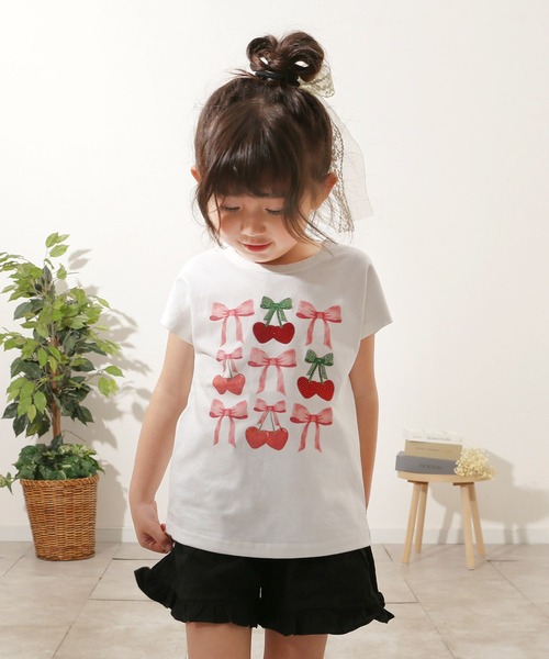 ■商品説明 シンプルなホワイトに映えるガーリーなデザイン、Roraの「チェリーポップT」が登場♪リボンとキラリと輝くチェリーモチーフが女の子らしい可愛さを引き立てます。やわらかな綿素材でチクチクせず、通気性も抜群!一日中快適です。シワになりにくく型くずれしにくいから、毎日のデイリー使いにぴったり。動きやすいフレンチスリーブで、ちょっぴり大人っぽさもプラス。洗濯機もOKでお手入れ簡単、ママも安心のラクラクケア♪ボトムスと合わせたりシャツを羽織ったり、着まわし力バツグンの一枚です! ■素材 : 綿100% ■モデルサイズ:身長:104cm 体重:15kg ■モデルの着用サイズ:110cm ★STAFF COMMENT★ スタッフの子供が着用してみました♪ ーーーーーーーーーーーーーーーーーーー 【サイズ感】 7歳 / 121cm 22kg / 普通体型/ 普段サイズ:120 120:丁度よい 11歳 / 141cm 33kg / 普通体型 / 普段サイズ:140 140:丁度よい 【透け感】 透け感はありません。 【着心地・素材感】 素材が100%綿なので、肌が敏感な娘でも安心して着られました。カーリーなデザインがとっても可愛くて、本人もお気に入りです。胸元のキラキラしたストーンが子ども心をくすぐるみたいで、着るたびに嬉しそうにしています。 ーーーーーーーーーーーーーーーーーーー