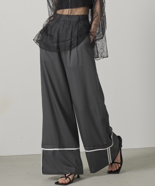 ー ディテール ー 配色ラインがアクセントになり、幅広のターンバックデザインが目を引くワイドパンツ。 上品な見え方のツヤ感とストンと落ちるシルエットがスタイルアップしてくれます。 ウエストは後ろのみゴム仕様できちんと見えつつラクチンな着心地。 ※裾折り返し部分は縫い付けてあります。 ※サイドポケットあり、バックポケットあり 【色味に関しての注意事項】 商品画像は、ストロボなど撮影機器の使用や光の当たり具合、 お使いのスマートフォンやパソコンなどの閲覧環境により、実際の色味と異なって見える場合がございます。 予めご了承ください。 【SNS動画掲載アイテム】 @aic_official 上記の公式インスタグラムアカウントにて着回し動画を掲載しております。 是非ご覧くださいませ。 ★お取り扱い注意事項★ 下記をご確認いただきご了承の上、ご購入ください。 ・着用中の摩擦などにより、ピリング(毛玉)が生じる場合があります。 ・洗濯の際は色落ちしますので単独で洗い、湿気を含んだ状態や水につけたままで放置しないでください。 ・濃色の製品は、摩擦や汗、雨などで濡れると、ほかの衣料に色移りする場合がございますので、充分ご注意ください。 ・商品の写真はサンプル品を撮影している為、実際の商品とは仕様や加工、加工によるダメージ、サイズ等が若干異なる場合もございます。 ・初回販売分と生産時期の異なる商品は、色味や加工等若干異なる場合がございます。 ・システムの都合上下げ札の税込み価格表記が商品ページの税込み価格と1円ずれている場合がございます。 ・掲載画像の商品の色味は、屋外や屋内の光の照射や角度により実物と色味が異なる場合がございます。 また表示のサイズ感と実物は若干異なる場合もございますので、 ・着用、お取り扱いの際は、商品についている品質表示とアテンションタグを必ずご確認下さい。