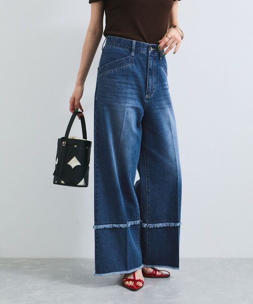 ◆2025夏◆ <POINT> ・美脚効果の高いフレアシルエット ・フリンジデザインが今年らしいアクセントに ・オールシーズンで着れる11オンスの生地を使用 【デザイン・シルエット】 秋冬のテーマにも合うフリンジディテールがコーディネートを今年らしく新鮮な印象を与えてくれます。 【素材】 11オンスの加工感もしっかり出て、カバー力にも優れた生地を使用しています。 【カラー】 ライトブルーとブルーの2色展開。 【おすすめのスタイリング】 デニムのラッフスブラウス(BVH45010 8月入荷予定)と合わせてSET UPでスタイリングして頂くのがおすすめです。 ジャケットスタイルなどの綺麗めアイテムのハズシとしてもおすすめです。 ----------------------------- 裏地:なし 光沢感:なし 透け感:なし 伸縮性:なし ウエスト:ゴムなし ポケット:あり 生地の厚さ:普通 季節:通年 ----------------------------- 【モデル着用サイズ】 全色モデル身長:168cm、着用サイズ:M 詳細モデル身長:165cm、着用サイズ:M ※画像の商品はサンプルです。 実際の商品と仕様、加工、サイズが若干異なる場合がございます。 ※画像によっては実際の色味と異なる場合があります。正しい色味は生地アップ画像をご確認ください。