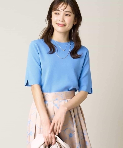 ◆a.v.v定番人気クルーネックニット◆ 【デザイン】 ・a.v.v定番人気のクルーネックニット ・何枚でも欲しくなる豊富なカラーバリエーション ・さらっとしたタッチでなめらかな着心地が嬉しいポイント ・長めの袖丈で二の腕もしっかりカバー◎ ・袖口にはスリット入りで折り返して着こなしを楽しめます ・Tシャツ感覚で着れるベーシックさが魅力 ・開きすぎないクルーネック仕様で上品に ・サイドにはスリット入りですっきりした印象 ・ホワイトはWEB限定カラーです 【素材】 ・ご家庭の洗濯機で洗えます ・UVカット機能付き ・これからの時期に嬉しいひんやりタッチ仕様 【コーディネート】 ベーシックに使えるので、汎用性の高さが魅力です。 ボトム次第でカジュアルにもきれいめにも着こなしを楽しめます。 ジャケットのインナーで通勤スタイルにもおすすめです。 幅広いスタイリングにマッチし重宝する一枚です。 【まいにちニットシリーズ】 ◆クルーネックサマーニット:K2FGV20039 ◆Vネックパフスリーブサマーニット:K2FGV59039 ◆ボートネックパフスリーブサマーニット:K2FGV69039 ◆クルーネックサマーニットカーディガン:K2CGV20049 ------------------- 透け感:なし 裏地:なし 伸縮性:あり 光沢感:なし 生地の厚さ:ふつう -------------------- ≪お気に入り登録機能の使い方≫ ■商品のお気に入り登録(ハートマークをクリック) 再入荷通知や値下げ等、お得なご案内を受けることができます。 -------------------- ※商品画像は、光の当たり具合やパソコンなどの閲覧環境により 実際の色味と異なって見える場合がございます。 商品の色味の目安は商品単体の画像をご参照ください。 ※34(XSサイズ)・42(XLサイズ)はWEB・一部限定店舗での販売です。