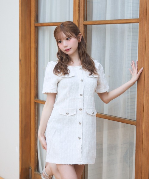 TITTY&CO.2025SS collection ♡1枚で上品に決まるツイードミニワンピース♡ [detail] 上品なツイード素材で仕立てた、クラシカルな印象のミニワンピースです。フロントのゴールドボタンとフェイクポケットが高級感をプラスしてくれます。しっかりとした生地感で一枚でも安心して着用できます。 --------------------------裏地:なし 透け感:アイボリーややあり伸縮性:なし生地の厚さ:普通-------------------------- [styling] 華奢なストラップサンダルを合わせて、品のあるデートスタイルに仕上げてみてください。ショート丈のノーカラージャケットを羽織れば、入学式やちょっとしたお呼ばれにも◎ロングブーツと合わせて甘さを引き締めた、大人ガーリーなコーディネートもおすすめです。 ※照明の関係により、実際よりも色味が違って見える場合がございます。 また、パソコン・スマートフォンなどの環境により、若干製品と画像のカラーが異なる場合もございます。 予めご了承くださいませ。 ※画像の商品はサンプルです。 実際の商品と仕様・加工・サイズが若干異なる場合がございます。 また、生産時期により、サイズやカラーに誤差が生じる場合がございます。 予めご了承くださいませ。 【商品のお気に入り登録】 完売カラーの再入荷や、セール通知などお得な情報を受け取ることができます。 ぜひご登録下さい♪ 【ブランドのお気に入り登録】 新作入荷や再入荷、セールやクーポンイベントなど注目のブランド情報を受け取ることができます。 ぜひご登録ください!!