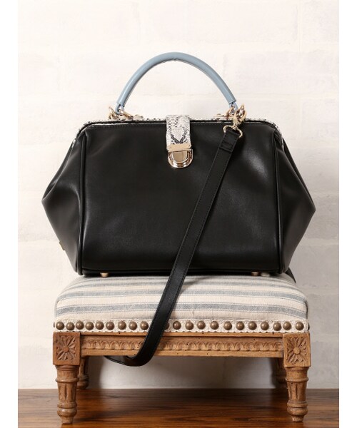 トレンドのパイソンがピリリと効いているボストンバッグ。持ち手の付け替えで肩掛けでも使える2wayタイプ。配色がコーディネートのアクセントにもなるキャッチーなルックスが魅力。