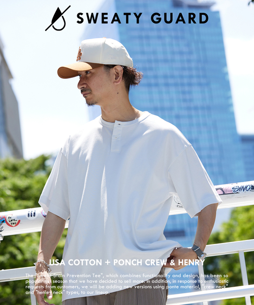 SWEATY GUARD 50/-ポンチH/N TEE 夏の定番アイテムとしてご好評をいただいる、ポンチTシャツにヘンリーネックTが新登場! 細めの50番手糸を使用した膨らみのある両面織りの綿100%生地を使用し、汗染み防止加工を施しました。 ポンチ素材ならではの独特のハリ感とスムースな肌触りが特徴です。 スタンダードなサイズ感で、薄過ぎず厚過ぎずのちょうどよい肉厚さが、羽織のインナーとしても1枚着としても活躍してくれるバランスのいいシルエットです。 光沢感のあるクリーンな表面感とプレーンなデザインで、デニムやチノなどカジュアルボトムはもちろん、きれい目スラックスや総柄パンツと合わせてもサマになるアイテムです。 ※relumeで展開する「汗ジミ防止Tシャツ」はこちら! 品番:25071464014020 商品名:USA コットン 汗ジミ防止 Tシャツ 品番:25071464012020 商品名:50/-ポンチ 汗ジミ防止 Tシャツ ********************** 透け感:なし 裏地:なし 伸縮性:ややあり 光沢感:なし 生地の厚さ:ふつう ********************** 【スタッフ着用コメント】 《スタッフH》 身長:170cm/体重:60kg/普段サイズ:M/着用サイズ:L サイズ感:ややゆとりがあるサイズ感 素材感:軽さも感じる素材 着心地:肌に当たっても不快感なく、快適な着心地です。 ********************** 《画像についてのご注意》 ※照明の関係により、実際よりも色味が違って見える場合があります。 またパソコン・スマートフォンなどの環境により、若干製品と画像のカラーが異なる場合もございます。 ※商品の色味は、商品アップ画像をご参照ください。 《商品のお気に入り登録について》 「カートに入れる」または「予約する」右側のハートマークを押していただくと、 再入荷、残り1点、セールなどの通知を受け取ることが出来ます。 本体:洗濯機洗い(ネット使用)