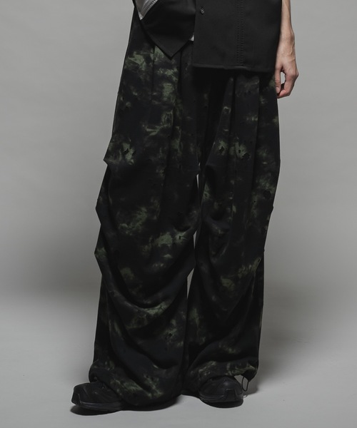 Casper John 2025 SPRING and SUMMER Collection OUTLAW 【Tie dye sweat pants/タイダイスウェットパンツ】 タイダイプリントを施したカットソー生地を使用 一般的なスウェットパンツの裏毛とは異なり非常に涼しく 更に一部ダメージ加工があり風通しも良い素材です。 スノーパンツをベースとした膝にタックで動きを出し、 裾にドローコードでシルエット変化もできるデザインで 快適かつ存在感も抜群なデザインスウェットです。 《BRAND CONCEPT》 CREATIVE / MODE / URBAN をコンセプトに、 トレンドに敏感な都会人、 常に新しいファッションを求める方に、 遊び心を追及した創造性の高いモードスタイルを提案する。