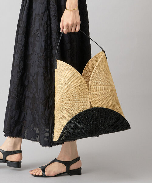 ■アイテム夏らしいラタン素材を使用した、ハンドメイドのバッグシリーズ。円形に編み込まれたパーツを3つ組み合わせたデザインがさりげない個性を演出します。縦長のフォルムとしっかりした奥行きで、見た目以上に収納力があるのもポイント。持ち手には本革を使用しており、上品な高級感をプラスしています。シティバッグとしてはもちろん、ビーチやリゾート、ドレスアップシーンにもマッチする、幅広く活躍するアイテムです。■素材本体:藤ハンドル:牛革※着用時は、必ず取扱い表示・タグをご確認の上、お取り扱い下さい。《予約商品について》・サンプルの為、素材情報については企画段階の情報を記載しております。公的機関での試験データ結果を受け、量産にあたり混率の変更が発生する場合がございますので、ご了承くださいませ。・サンプルでの撮影、計測をしております。商品の仕様が一部変更になる場合がございます。・撮影サンプル品はブランドタグがついておりません。製品にはタグがつきますので、製品の表に縫い糸が見える場合がございます。・工場の生産の都合上、納期が変更になる場合がございます。検品や輸送の関係で、発送日が前後しますのでご了承ください。また、入荷状況により、お客様への発送が店頭販売より遅れる場合もございます。・店頭に陳列していた商品も含まれる場合がございます。《商品画像について》ご覧頂いている商品の写真につきましては、できるだけ実物の色に近くなるように努めておりますが お使いの環境(モニター、ブラウザ等)の違いにより、色の見え方が実物と若干異なる場合がございます。 予めご了承ください。《ハートをタップして商品のお気に入り登録》登録カラーの商品の「残りわずか」「再入荷」「値下げ」通知を受け取ることができます。各ショップアプリにてブランドフォロー 新商品などの入荷情報、最新のニュースやお得な情報を受け取ることができます。