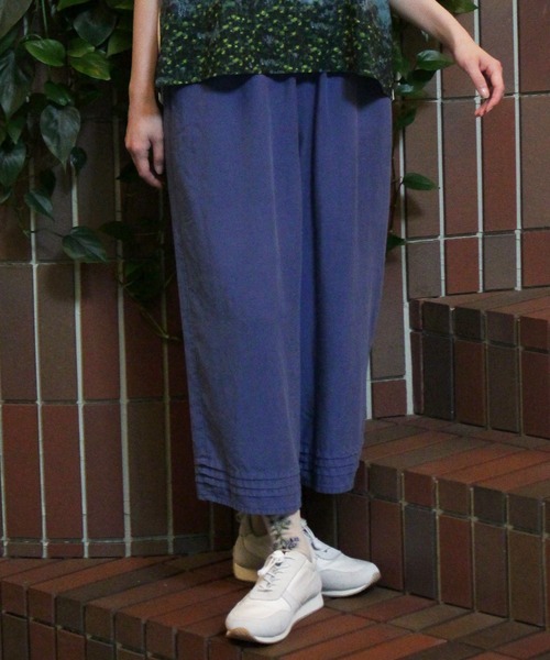清涼感のあるセルロース麻素材を使用したイージーパンツ。 製品染めによるニュアンスのある色合いが特徴です。 裾のタックとポケット口のタブがアクセントになっています。 ウエストはゴム&紐で快適な履き心地です。 お手入れ:手洗い 店舗へお問い合わせの際は、下記の品番をお申し付け下さい。[品番:34160153]