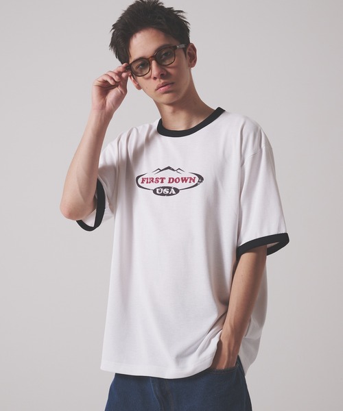 【FIRST DOWN USA】リネンタッチ ショートスリーブ リンガーTシャツ | LINEN TOUCH S/S RINGER TEE【デザイン】リネンライクな爽やかな質感のリンガーTシャツ。クラシックなリンガーTシャツデザインをベースに、ヴィンテージ感のあるロゴを胸元にプリント。襟元と袖口には配色のリブを施し、コントラストの効いたデザインが特徴。リラックスフィットのシルエット。【素材】ポリエステル100%のリネンライク素材を使用。清涼感のあるタッチで適度なハリ感もあり、柔らかい風合いが特徴。リネンライクなのでお手入れを気にする必要がないのがうれしい。【コーディネート】ストレートデニムやワイドパンツと合わせてレトロなアメリカンカジュアルスタイルに。カーゴパンツやジョガーパンツと組み合わせることで、ストリートテイストなコーディネートも可能。シンプルなアイテムと合わせても存在感を発揮し、シーズンレスで活躍。【チャート】シルエット:スタンダードフィットストレッチ性:あり光沢感:なし※自社ブランド比較【SIZEについて】FIRST DOWN USAについては全体的にやや大きめのサイズスペックになっております。チャート欄のシルエットに関しては、自社比較にて明記しております。【品番】F801067【FIRST DOWN/ファーストダウン】地下鉄の車内をタグやグラフィティが埋め尽くし、アメリカ有数の犯罪多発都市として不穏なムードと緊張感が立ち込めていた80年代のニューヨーク。FIRST DOWNはかつてのこの地で誕生し成長を遂げたブランドです。決して良好とは言えない環境下でも多くの人々が強いエネルギーを持ち、音楽やストリートカルチャーの隆盛を支え、アートシーンにも大きなムーブメントがたくさん生まれた時代。彼らが東海岸の極寒の冬を凌ぐのに、羽毛がぎっしりと詰まったFIRST DOWNのアウターは最適なギアだったのです。