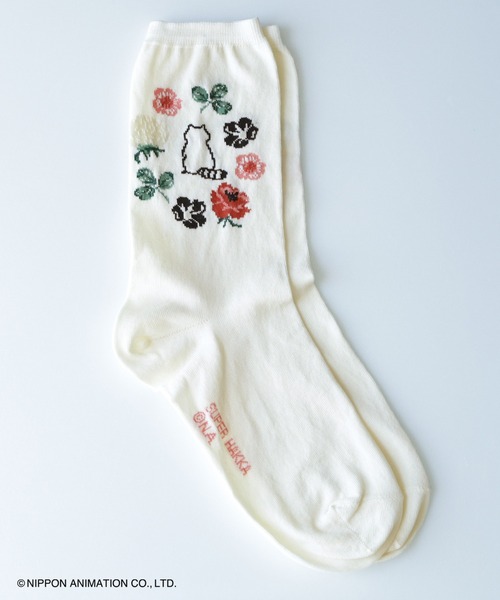 世界名作劇場 あらいぐまラスカルとのコラボレーションシリーズ。花の輪の中にラスカルを配置した可愛らしい柄を、ジャカードで表現したソックス。「大人でも取り入れやすいキャラクター」を意識して、ラスカルを単色に、周りの花々もシックな色合いでまとめました。ベーシックなオフホワイト、ブラックに、ラスカルカラーのイエローの3色展開です。「世界名作劇場」「世界名作劇場」シリーズは、1975年に放送された『フランダースの犬』からスタートした主に海外の児童文学を原作・原案とした全26作品のアニメシリーズです。様々に展開される物語には、友情や愛情、絆など心温まるエピソードがたくさん詰まっており、多くの人々に感動を与えてきました。1977年にはシリーズ3作目として『あらいぐまラスカル』が放送され、現在でもラスカルの愛らしい姿は幅広い世代の心をつかんでいます。『ラスカルジャカードソックス』「あらいぐまラスカル」放送期間:1977/01/02~1977/12/25原作:スターリング・ノース 「はるかなるわがラスカル」1977年文化庁こども向けテレビ用優秀映画作品賞受賞1977年厚生省児童福祉文化奨励賞受賞お手入れ:手洗い店舗へお問い合わせの際は、下記の品番をお申し付け下さい。[品番:34060052]