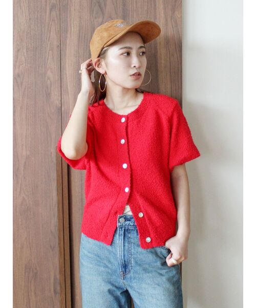 秋らしさを取り入れられるハーフスリーブニット ■デザイン 前開きデザインでカーディガンとしても、トップス感覚で着こなせるアイテム。 暑い夏のスタイリングから、ニット素材に切り替えることで秋らしい雰囲気を楽しめます。 大きめのシェルボタンがヘルシーで可愛らしいアクセントになり、 袖口を少し小さめに仕上げることで、きゅっと上がった袖がワンポイントとして映えます。 ■生地感 フェザーヤーンで表情のある生地感が特徴。 天竺編みなのであつすぎず、秋らしさを夏から取り入れやすい生地感です。 ■サイズ感 腰くらいの着丈で、裾リブが施されているため、きゅっとあげてショート丈っぽく着ることができます。 スタイルにアクセントを加えつつ、着こなしの幅を広げてくれるデザインです。 ■スタイリング デニムとのスタイリングがおすすめで、 特に袖にボリュームがあるデザインが、デニムとのギャップを可愛らしく演出します。 このボリューム感が、カジュアルなデニムと相まって絶妙なバランスを生み出し、よりおしゃれに仕上がります。 ギャップ感が可愛く、コーディネートにアクセントを加えてくれるアイテムです。 ・・・・・・・・・・・・・・・・・・・・・・ 透け感:なし 裏地:あり 伸縮性:なし 光沢感:なし 生地の厚さ:普通 ・・・・・・・・・・・・・・・・・・・・・・ ※商品画像はサンプルのため、色味やサイズ、素材の混率等の仕様に 変更がある場合がございます。予めご了承ください。 ※生地寄り画像を正規の商品の色味に近づけております。 ■商品のお気に入り登録 再入荷通知やラスト1点、お得なプライスダウンの情報も受け取ることができます。 ぜひご登録ください◎