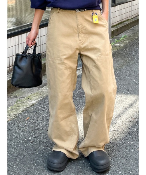 ユニセックスで穿いていただけるワークデザインパンツ ■デザイン ダブルニーの仕様でより本格的なメンズライクデザインに仕上げています。 ルーズシルエットでゆったりと穿くスタイルでカジュアルなスタイリングにマッチする1本。 ■生地感 コットン100%のダック生地を使用。 コシのある生地感ですがウォッシュ加工では着心地の良い仕上がりです。 ■サイズ感 ルーズシルエットでゆったりと穿いていただける設定に。 S,M,Lの3サイズでメンズの方も楽しんでいただけます。 ■スタイリング カジュアルなニットとのスタイリングでメンズライクな合わせがオススメ。 足元はスリッポンでトレンド小物を入れると今季らしいムードでおしゃれ見えします。 ・・・・・・・・・・・・・・・・・・・・・・ 透け感:なし 裏地:なし 伸縮性:なし 光沢感:なし 生地の厚さ:普通 ・・・・・・・・・・・・・・・・・・・・・・ ※商品画像はサンプルのため、色味やサイズ、素材の混率等の仕様に 変更がある場合がございます。予めご了承ください。 ※生地寄り画像を正規の商品の色味に近づけております。 ■商品のお気に入り登録 再入荷通知やラスト1点、お得なプライスダウンの情報も受け取ることができます。 ぜひご登録ください◎