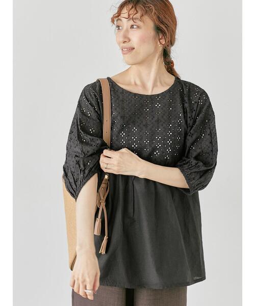 シフリー刺しゅうの切り替えが愛らしい表情をプラスするブラウス。 ふわっとした柔らかなボリューム感で、女性らしい優しげな雰囲気を演出してくれます。 肌触りの良い綿100%素材を使用しており、さらりと快適に着用することができる1着です。 ※商品画像は、撮影環境やお客様のご利用のPC・スマートフォンのモニター環境などにより実物と色味に差異がある場合がございます。