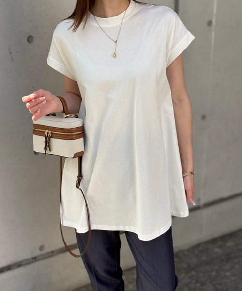 2025SPRING&SUMMER NEWITEM 接触冷感加工付きのフレアシルエットのプルオーバーが登場! ・接触冷感加工付きのクルーネック×コンパクトシルエットで着回し力抜群◎ ・コットン100%でサラッとした肌触りのいい素材で夏まで快適に使えるノースリTシャツです。 ・コンパクトなカーディガンやジャケットのインナーとしてもご着用いただけるデザインです。 ・袖ぐりのシルエットは肩に少しかかる長さで見た目の細見えを意識したデザインです。 ・フレアーシルエットで女性らしく、着丈はお尻が隠れる安心丈です。