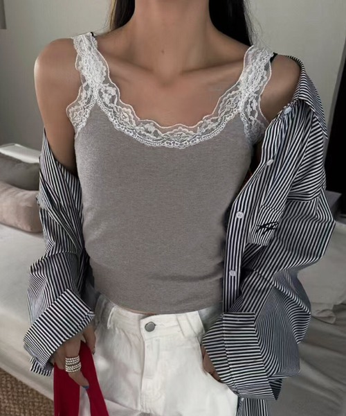ガーリーさん必見♡フリルレースが付いたリブタンクトップ ■おすすめ着用シーズン:春服 夏服 秋服 ■生地感:薄手 リブニット地 ■伸縮性:あり ■透け感:ホワイトあり ■裏地:無し ■ポケット:無し ※柔らかい糸を使用しているため、サイズに多少のブレがあります。 ※生地の特性上、引っ掛かりやすくなっているので、ご注意下さい。 ※レース生地は生産時期により、柄が画像と見え方に相違がある場合がございます。予めご了承下さい。 ※平置き採寸になります。若干の誤差が生じる場合がございます。 ※輸送時による、多少の汚れ・シワがある場合がございます。 ※撮影時のライティング、ご覧になっているモニター・PC環境により実際の商品と色味が異なって見える場合がございます。ご了承の上お買い求め下さい。