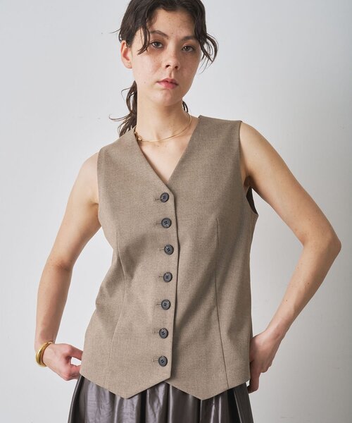 マニッシュなエッセンスをプラスする、大人のショートベスト ■ミニマルなデザインがスタイリッシュなショートジレ。 ■シングル釦のノーカラータイプがベーシックで合わせやすいデザイン。 ■すっきりと見える着丈はハイウエストボトムやワイドボトムとも相性抜群。 ■比較的コンパクトなサイズ感で、ボリュームのあるスカートに合わせるのも◎。 ■同素材のグルカパンツ(ブランド品番:WGZ1051702A0004) とのセットアップもおすすめ。 【COLOR】 グレー:クラシカルなムードで格好良く決まるグレンチェック柄。 ブラウン:大人っぽく上品な印象をプラスするモカブラウン。 【MATERIAL】 グレー:シルク×ナイロンの杢調とシルクのネップで表情を出し、光沢としなやかなドレープ性を出した生地。 ブラウン:抑えをしっかりさせることでハリコシを持たせて、仕立ての良さをもたらした綾織のシャークスキン。 ---------------------------------------------------- 洗濯方法:ドライクリーニング 透け感:なし 裏地:なし 伸縮性:なし 光沢感:なし ---------------------------------------------------- 【注意事項】 ・画像の商品はサンプルです。実際の商品と仕様、加工が若干異なる場合があります。 また 、パソコンやスマートフォンのモニター環境などにより、色味が違って見える場合があります。 ・店頭及び屋外での撮影画像は、光の当たり具合で色味が違って見える場合があります。 商品の色味は、スタジオ撮影の画像をご参照ください。 ・入荷状況により、お届け予定が前後する場合があります。 ・お客様への発送が店頭販売より遅れる場合があります。 ・追加生産商品は、一部の店舗、通販で販売中の場合があります。 予めご了承下さい。 【気になるアイテムは、「お気に入り」登録を】 ハートマークをクリックしておくことで、スムーズにお買い物が楽しめます。 ・ラスト一点のお知らせ ・再入荷のお知らせ ・SALEのご案内