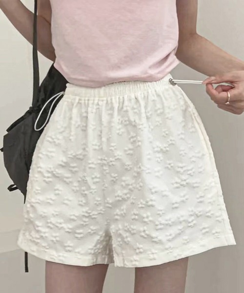 ガーリーでお花柄のショートパンツが登場♡ ♥ZOZOTOWN限定販売商品♥ ♡デザイン♡ エンボス加工が施されていてお花柄が浮き出た デザインのショートパンツ♡ ウエストがゴムになっていて、サイドにドローコードが 付いていてサイズ調整が可能! 生地感もさらっとしていて履きやすいです♡ ♡カラー展開♡ ホワイト、ブラック、ピンクの3色展開。 ベーシックな色味にガーリー感のある ピンクも選べてコーデの幅が広がります! ♡生地♡ 本体ポリエステル85%、綿15%を使用。 さらっと履ける素材感で楽ちんです♡ ♡コーデ♡ 夏らしくプリントTシャツで合わせて楽ちんな夏コーデに♡ お花柄が浮き出て可愛く見えます! シンプルだけどシンプルすぎないのがいい♡ シンプルな半袖ブラウスやカットソーと合わせるのが おすすめです♡ ~frunco shopping information~ ▼商品のお気に入り登録 完売カラーの再入荷通知入り登録 ♡をクリック!や、ラスト1点の通知、 セール商品の通知、をお知らせします。 ▼ブランドのお気に入り登録 新商品や再入荷など、fruncoのお得な情報を いち早く受け取ることができます。 ぜひご活用ください! 【商品画像について】 ・画像はサンプルです。 実際の商品と仕様、加工、サイズ、カラーが 若干異なる場合がございます。 ・生産時期により多少の色ブレが生じてしまう可能性が ございますことをご了承くださいませ。 ・撮影場所や照明の照射・角度、お使いのモニター環境により お色味が異なる場合がございます。 予めご了承ください。
