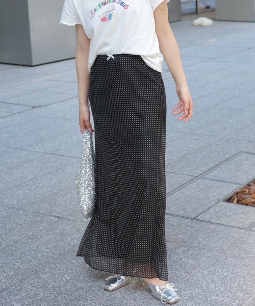伸縮性抜群のドット素材を使用したIラインシルエットのスカートが登場。 ウエスト部分にはレースと、 ポイントでリボンをあしらった 大人ガーリーなデザインです。 タイトすぎずルーズすぎない 絶妙シルエットが 体型カバーを叶えてくれます。 クロップド丈などタイトなトップスから オーバーサイズのTシャツなどルーズなトップスまで どんなアイテムにも合わせやすい、着回し力〇なアイテムです。 [ select item ] JUMELLEらしい、ガーリーカジュアルなスタイルに ぴったりなアイテムを厳選してセレクト。 着心地やシルエットまでcheckし、セレクトしています。